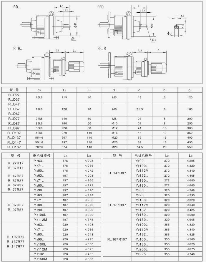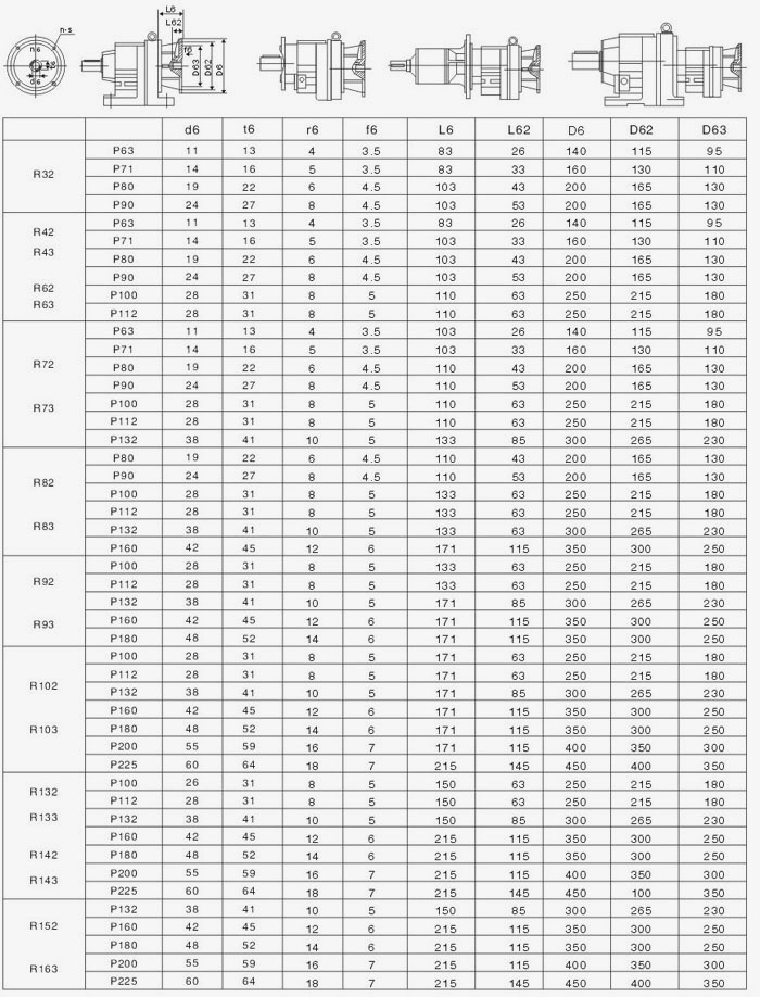 R系列斜齒輪硬齒面減速機選型安裝尺寸