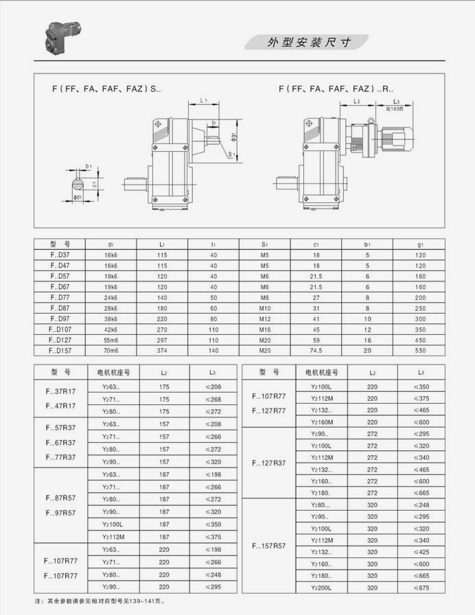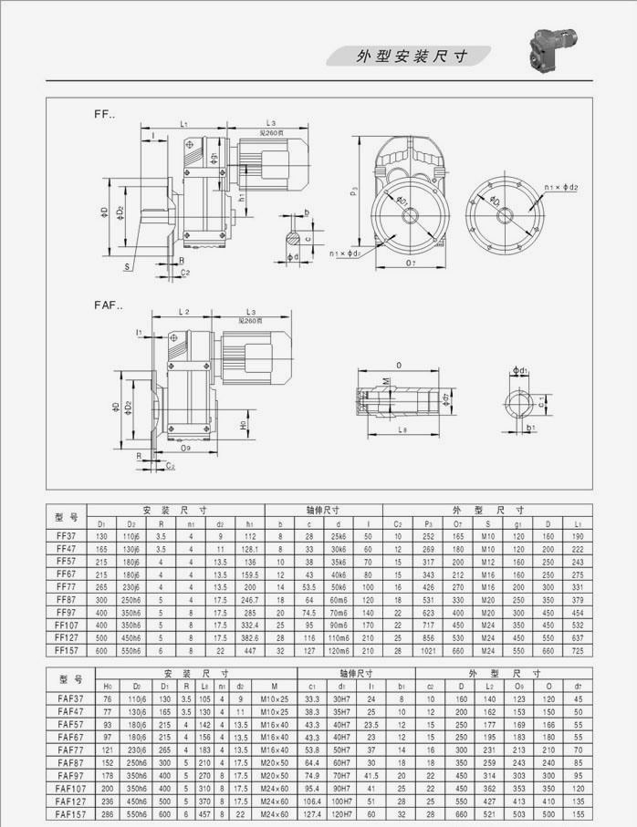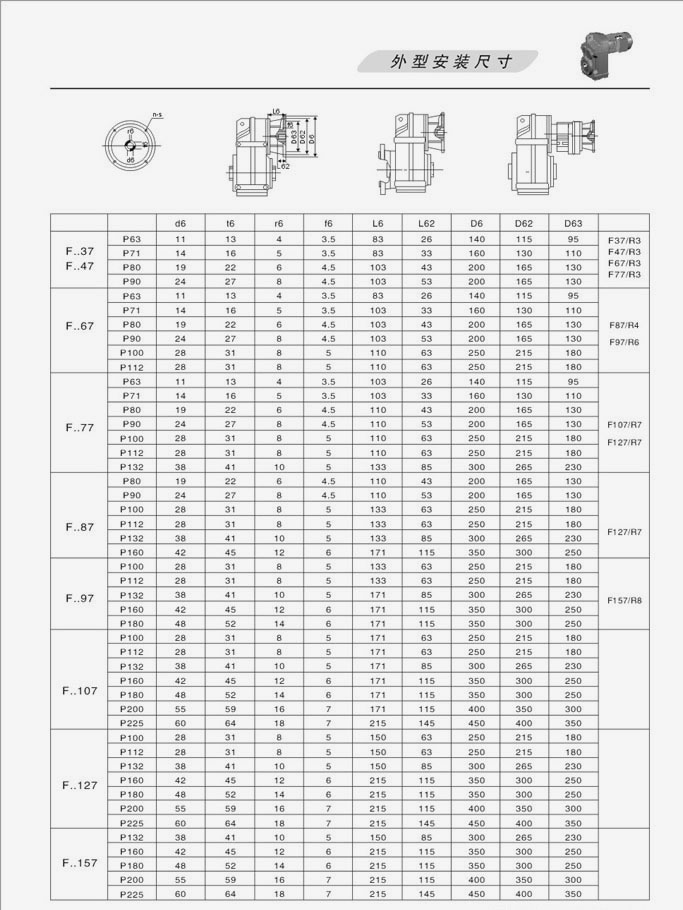 F系列平行軸斜齒輪減速機外型安裝尺寸