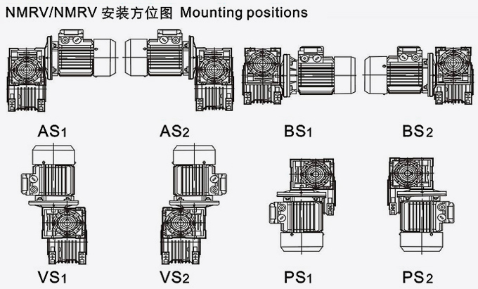 NMRV/NMRV雙級組合減速機安裝方位圖