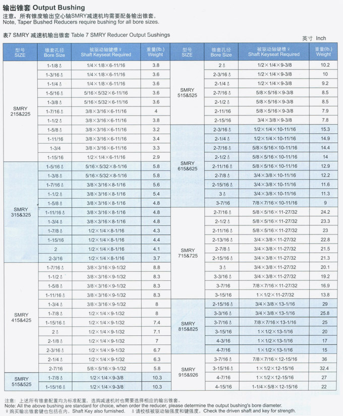 SMRY英制軸裝式斜齒輪減速機(jī)輸出錐套尺寸