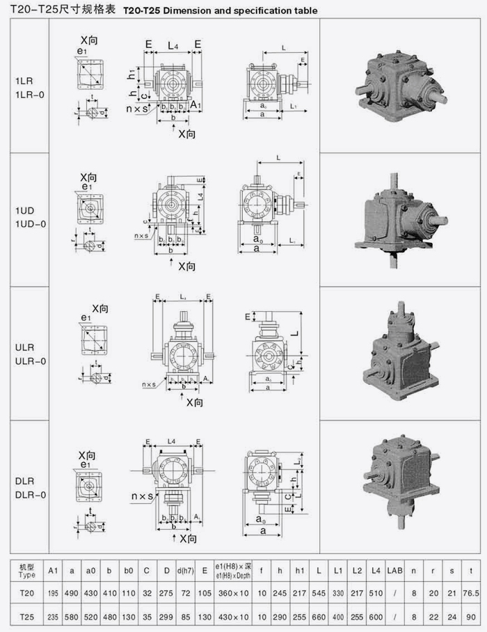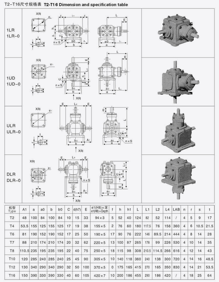 T系列螺旋傘齒輪轉(zhuǎn)向箱尺寸規(guī)格表