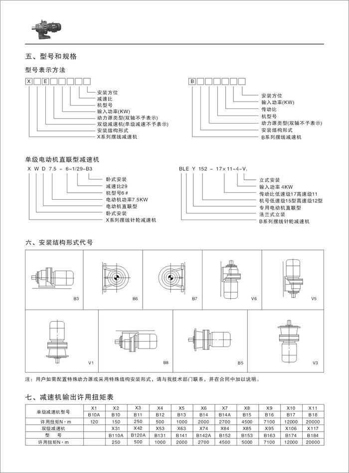 減速機型號表示方法、安裝形式、輸出許用扭矩表
